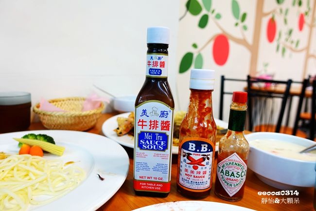▲吃牛排的好朋友~牛排醬、辣醬及TABASCO